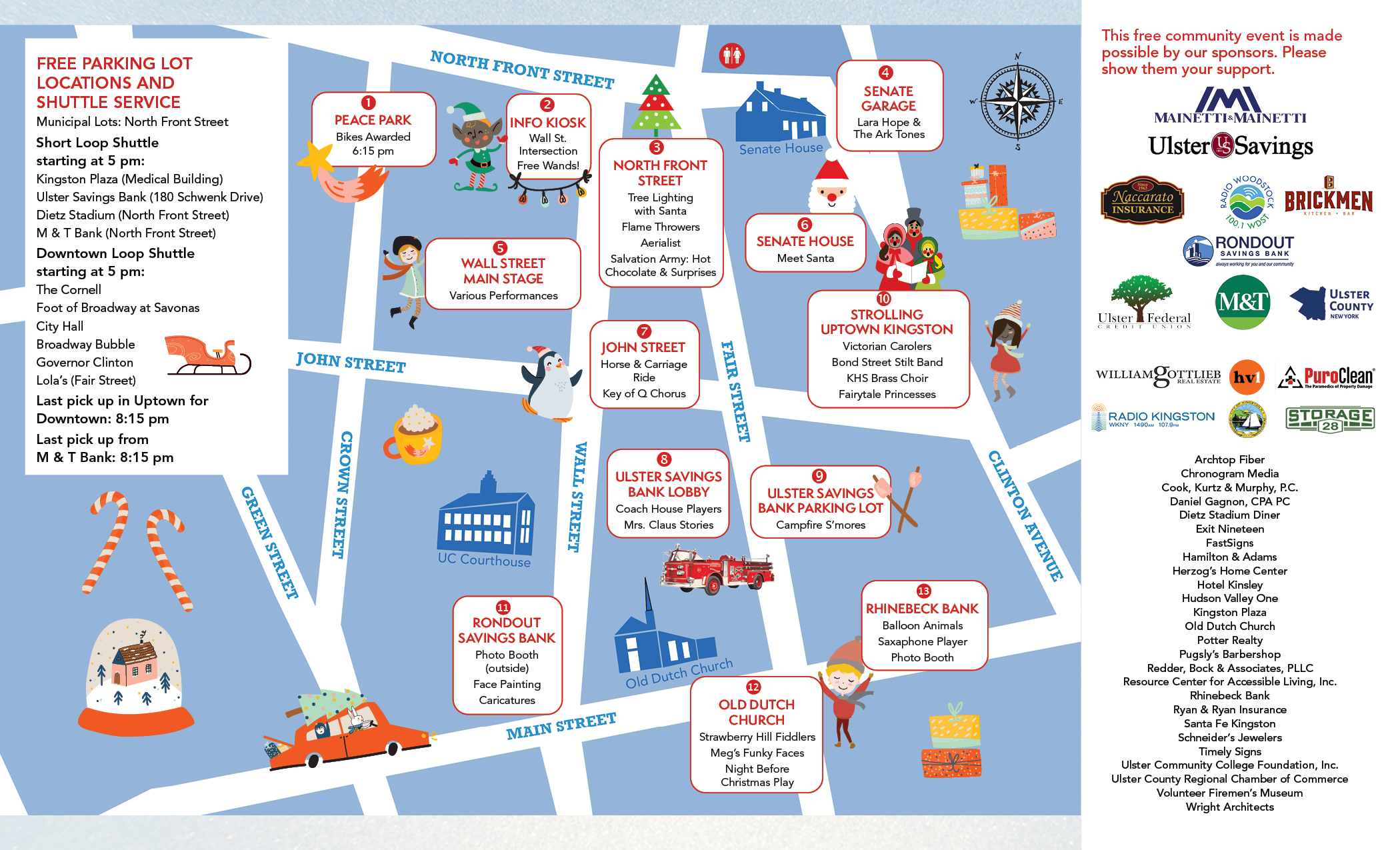 *NEW* We know parking can be a issue! This year, there is much more parking available. Ulster County is providing free, continuous shuttle service from downtown-midtown-uptown! Also continous shuttle service from local parking areas like Kingston Plaza, Ulster Savings Bank, Dietz Stadium.